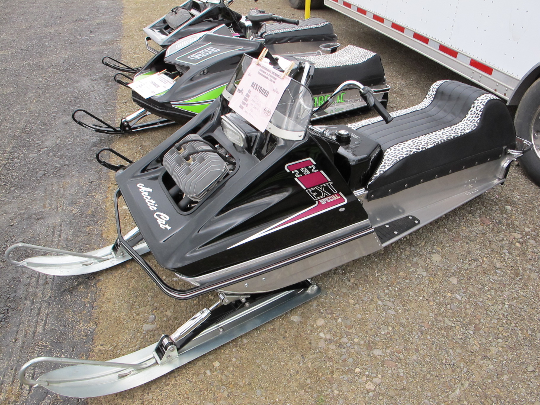 Other entries of note included a seldom-seen Arctic Cat House Cat shown by Pennsylvanian Bill Sowers. The bottom end (sub-Kitty Cat model) of the 1972 Arctic Cat line was an inflatable “snowmobile” styled after the big Cats and powered by the leg muscles of the rug rats it was made to carry. Henry Briscoe’s Arctic Cat competition sled display included Turf Tiger grass racer, a 1971 EXT Special, a King Cat 800,and a Sno Pro. He also exhibited a beautifully restored Cat Ramrod mini-bike. Steve Eichman brought a really nicely done 1972 EXT 650. Doug and Bob Crandell had their usual display of super clean Cats. And Adam Leubner showed a 1982 Arctic Cat Puma prototype with direct drive and a huge driven clutch mounted directly to the drive shaft. This model was never produced because Arctic Enterprises was forced into bankruptcy very soon after this rare prototype was constructed.