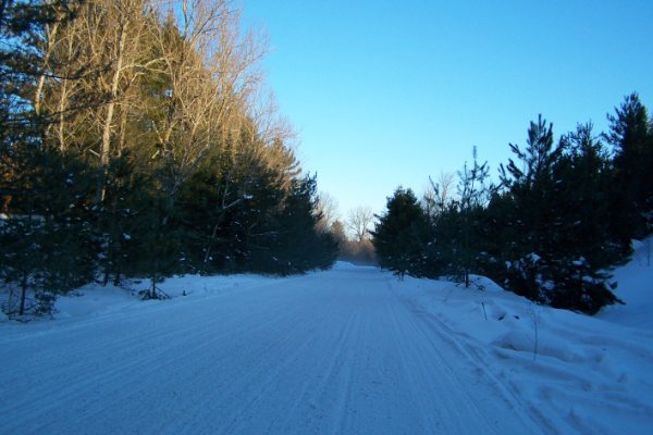 We stop to check are trail map and Todd pulls his recoil rope out to far and it snaps but the little 250cc Elan is running and away we go. We cross M-55 heading north out through the woods we go and down the nicely groomed trail and I notice one of the newer sleds beside me telling me to stop, problems behind, seems Todd’s sleigh pin fell out and when the hitch came loose it fell in the snow and unloaded his sleigh all over the trail. So we turn around and go back to help get him back on the trail. We fix his rewind while he is shut down and not long we are off again. We travel trouble free until we get nearly to Grayling Michigan and Joe’s 12/3 decides she needs to take a break so we wait for her to cool down a bit. While we are waiting and b.s.ing, Joe say’s he been seeing these little black pieces all over the trail and wondering if maybe they were snowmobile parts so we start checking are sleds and my ol’ TNT is missing all the rear drive cogs but is still drivable. Thank God for cell phones. I make a quick call to my neighbor, Red, and he agrees to run a new rear axle to Grayling where we are going to intersect a main road.